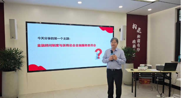 浙商总会金融服务委员会执行副主席沈金方老师讲授了《金融顾问制度与银行业务创新》。详细介绍了浙江省金融顾问制度、浙商总会金融服务委员会和临平综合金融服务示范区、金研财务顾问事务所等情况,诠释企业融资方式、企业流动性管理、供应链金融、银行业务创新等。