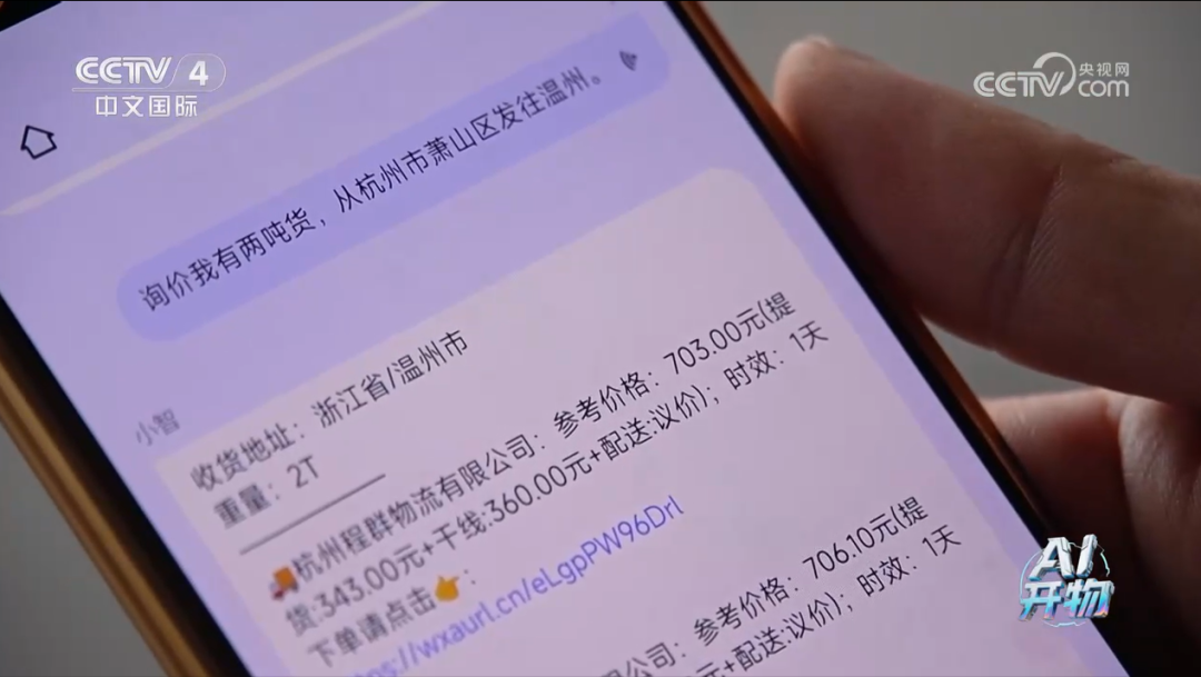 10月3日晚,央视国际频道(CCTV4)《中国新闻》以近3分钟篇幅专题聚焦传化智联,报道"人工智能+"构建现代物流高效协同新范式!